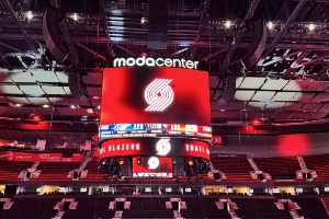 開拓者主場摩達中心近日公布了全新的中場大屏幕以及球場周邊曲面屏的升級。