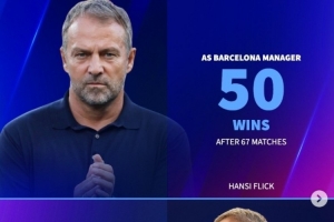 體育資訊9月26日訊 巴薩本輪3-1擊敗奧維耶多,根據德轉統計,弗里克實現巴薩50勝里程碑。