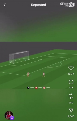 卡拉菲奧里在IG上轉發了一段視頻,調侃自己對陣曼城時的離譜射門——需要把球門放大到什么程度他才能射進????