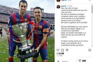 體育資訊9月27日訊 37歲的西班牙傳奇中場布斯克茨宣布將在本賽季結束后退役,他和哈維、伊涅斯塔曾在巴薩組成了堅不可摧的中場三角。在社交媒體上,哈維為老友送上了祝福。