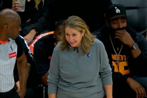 快船球星哈登再度來到水星主場觀戰,支持水星隊。