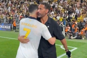 C羅的前曼聯隊友費迪南德也來到現場觀戰,并和C羅擁抱寒暄。