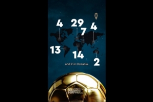 在總計100位評委中,有73人將首票投給了登貝萊,以下為各大洲具體的票數分布: