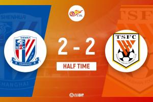 半場戰(zhàn)罷,申花暫2-2泰山。