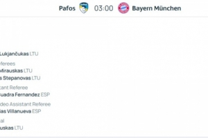 體育資訊9月28日訊 拜仁將在周三凌晨3點的歐冠,做客挑戰塞浦路斯球隊帕福斯,本場比賽的裁判組名單已經公布。