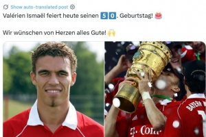體育資訊9月28日訊 今天是前法國國腳瓦勒里安-伊斯梅爾50歲生日,拜仁官推也曬出其昔日身披球隊戰袍奪冠照片為其送上祝福。