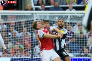 體育資訊09月29日訊 阿森納vs紐卡第82分鐘,約克雷斯禁區(qū)內(nèi)被拉塞爾斯按臉?lè)诺梗门形醋髋辛P!