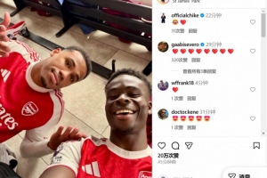 在社交媒體上,薩卡曬出更衣室照片慶祝來之不易的勝利,英格蘭邊鋒笑容燦爛顯然對賽果非常滿意。