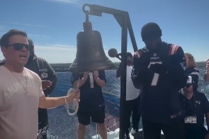 布朗還和來自波士頓的好萊塢影星馬克-沃爾伯格一起為比賽進(jìn)行了敲鐘儀式。