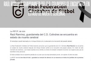 對科林德雷斯俱樂部19歲門將勞爾-拉米雷斯的逝世深表哀悼。