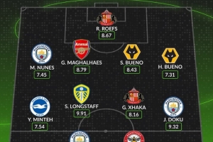 后衛:努內斯(曼城)、加布里埃爾(阿森納)、圣地亞哥-布埃諾(狼隊)、烏戈-布埃諾(狼隊)