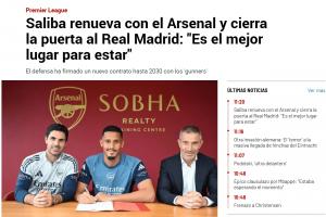 《阿斯報(bào)》的題目則是《官方:皇馬錯(cuò)過薩利巴,阿森納官宣與法國(guó)中衛(wèi)續(xù)約至2030年,這名球員原本在皇馬的引援計(jì)劃中》