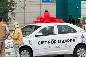 照片中阿拉木圖街頭??恐惠v噴有姆巴佩涂鴉的汽車,唐納德-赫伊森也將這張照片@了姆巴佩,并附上4個“笑哭”表情。