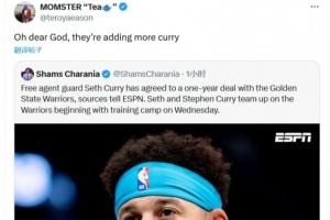 火箭隊球員伊森的母親轉發相關報道,評論道:“我的天哪,他們加了更多的‘咖喱’(Curry庫里,作名詞時有咖喱之意)。”