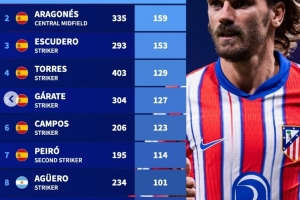 體育資訊10月1日訊 在本輪歐冠馬競5-1擊敗法蘭克福的比賽中,格列茲曼打進個人馬競生涯第200球。德轉也盤點了馬競隊史射手榜,其中格列茲曼居首,具體如下:
