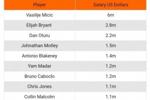體育資訊10月1日訊 有媒體曬出了以色列特拉維夫夏普爾籃球隊的新賽季工資表,球隊20人,總薪資達到了2300萬美元,按照此前報道米稀奇稅后年薪為600萬美元來看,這份工資表也都是稅后工資。