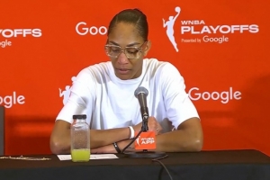 在賽后的新聞發布會上,阿賈談到了科利爾炮轟WNBA聯盟總裁凱茜-恩格波特的事情,她堅定地站在了球員一方。她表示:“我對恩格波特的言論感到惡心,很高興科利爾代表我們球員們發聲。”