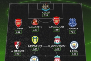 體育資訊10月1日訊 數據網站Whoscored盤點了英超9月場均評分最高陣容,具體如下: