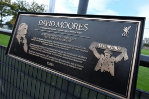 體育資訊10月3日訊 利物浦官網消息,俱樂部前主席大衛-摩爾斯紀念牌在柯比學院揭幕。