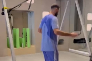 體育資訊10月3日訊 本澤馬更新社媒動態,曬出在健身房內跳繩的視頻。