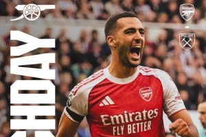 阿森納官方社媒發(fā)布了為此役制作的海報,隊內(nèi)中場梅里諾單人出鏡。