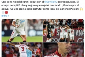 阿茲皮利奎塔:很遺憾未能和塞維利亞以三分慶祝我的首秀。球隊的表現不錯,并且肯定會繼續進步。感謝大家的支持,在主場皮斯胡安球場真的是太開心了。