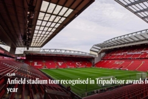 這一獎項完全基于游客的真實評價和評分,彰顯了俱樂部對為來自全球各地游客提供難忘體驗的堅定承諾。上個月,超過55000名游客參觀了這座屢獲殊榮的球場及博物館,創下了新的紀錄。也進一步鞏固了安菲爾德作為頂級旅游景點的地位,并為利物浦充滿活力的旅游業做出了重要貢獻。