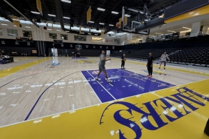 體育資訊10月10日訊 昨日,湖人記者Jovan Buha曬出湖人訓練場的照片,并提到在三分線內多了一條“兩分線”。
