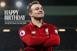 利物浦官方社媒曬出沙奇里的生日海報,配文:“生日快樂,沙奇里。”