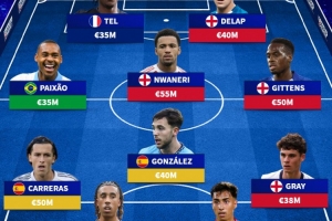 無緣國家隊身價最高陣容(總價4.53億歐,指從未入選國家隊)