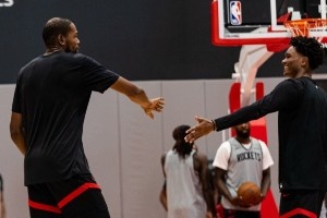 體育資訊10月12日訊 火箭官方更新了球隊今天的訓練照,多位球員都有出鏡,看球衣顏色似乎進行了分組對抗,球員的狀態看起來都比較積極。