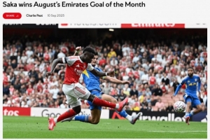 體育資訊9月11日訊 阿森納官方消息,薩卡對陣利茲聯的抽射破門當選8月隊內最佳進球。