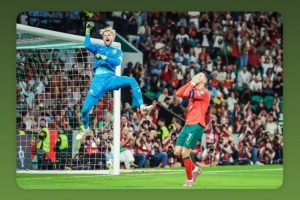 愛(ài)爾蘭門(mén)將凱萊赫社媒曬撲出C羅點(diǎn)球后慶祝的照片,配文:“雖然未能如愿,但仍有積極因素可以帶到周二的比賽之中(對(duì)陣亞美尼亞)。”