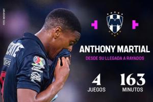 TNT統計了球員在蒙特雷的數據,馬夏爾出場4次總計163分鐘,沒有獲得進球或者助攻。