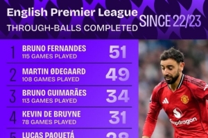 體育資訊10月13日訊 根據數據機構Squawka的統計,自2022/23賽季以來,B費在英超聯賽中以115場比賽完成51次成功直塞的數據高居榜首。厄德高以108場比賽送出49次直塞的成績緊隨其后,位列第二。
