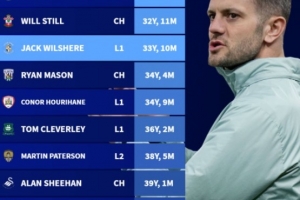 體育資訊10月14日訊 德國轉(zhuǎn)會市場盤點(diǎn)了英國前四級別聯(lián)賽球隊(duì)主教練年齡情況,盧頓新帥威爾希爾以33歲10個(gè)月成第三年輕主教練。