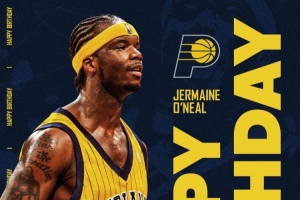 體育資訊10月14日訊 今天是步行者名宿杰梅因-奧尼爾(小奧尼爾)的47歲生日,步行者官方也在第一時間送上生日祝福。