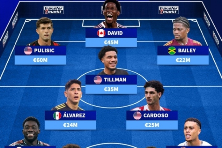 體育資訊10月16日訊 德轉盤點了中北美及加勒比海足聯(lián)球員的最高身價陣容,整套陣容總價值高達3.15億歐元。其中美國邊鋒普利西奇以6000萬歐元成為身價最高的球員,加拿大后衛(wèi)阿方索-戴維斯以5000萬歐元位列第二。