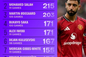 體育資訊9月11日訊 數(shù)據(jù)顯示,自2022/23賽季開始,B費是英超運動戰(zhàn)創(chuàng)造機會最多的球員。