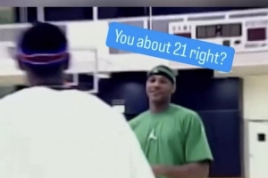 其中有一段畫面為詹姆斯和好友安東尼在訓練館內練球,談笑間安東尼質疑起詹姆斯的年齡:“你其實有21歲吧?”