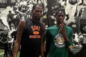 談到他最喜歡模仿打球風格的球員,迪班薩說:“自我看球開始,KD(杜蘭特)就是我最喜歡的球員。因為他得分太輕松了,他讓一切都看上去輕而易舉。他只運球兩三次就能進入攻擊位置,那就是職業球員的球風,他不用做過多的事情,直接運用自己的技術動作。”