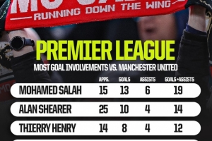 體育資訊10月17日訊 北京時間10月19日晚上,利物浦將在英超第8輪比賽中主場對陣曼聯,Squawka統計了球員在對陣曼聯的英超比賽中的參與進球數量,薩拉赫19球居首。