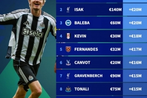 英超身價漲幅榜:沃爾特馬德+3500萬歐居首,伊薩克+2000萬歐次席