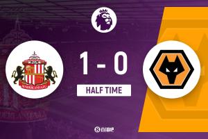 體育資訊10月18日訊 北京時間10月18日22點,英超第8輪,桑德蘭在主場光明球場迎戰狼隊。上半場,兩隊機會都不多,穆基勒破門。上半場桑德蘭1-0領先狼隊。