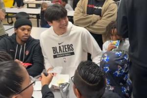 開拓者今日全隊參與社區活動,小吧也來到了現場,發現楊瀚森真的很招小球迷們的喜愛。很多小孩子圍著楊瀚森轉,小楊笑得也很開心。