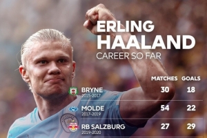 哈蘭德職業生涯至今進球分布: