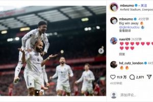 賽后,此役閃擊破門的姆貝莫更新社媒慶祝勝利,他寫道:關(guān)鍵的客場勝利??