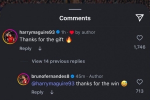 B費賽后社媒曬照慶祝勝利,馬奎爾留言:“謝謝你的禮物。”