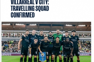 體育資訊10月20日訊 曼城公布了10月22日周三客戰比利亞雷亞爾的歐冠大名單。