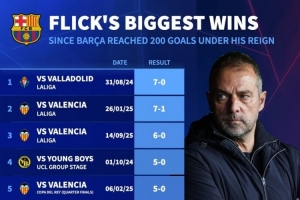 德轉列弗里克執教巴薩以來最大勝利排名: